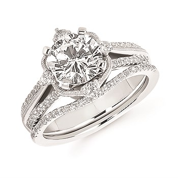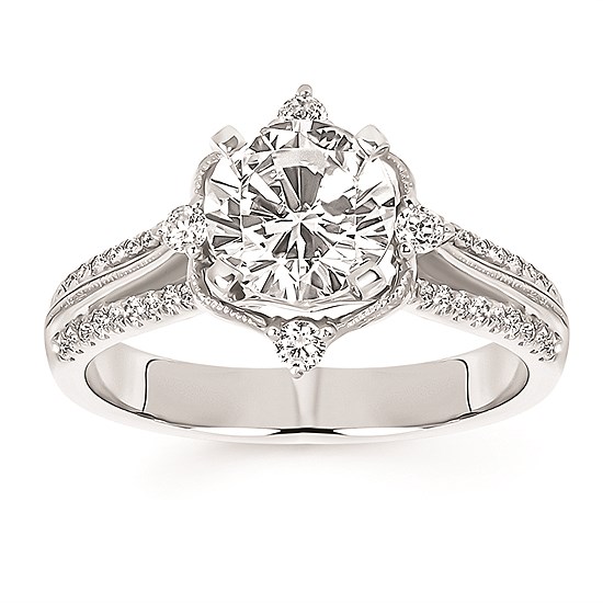 Engagement Ring Forever ElegantĀ® 1/3 Ctw. Diamond Semi Mount shown with 1 3/4 Ct. Round Center Diamond in 14K Gold