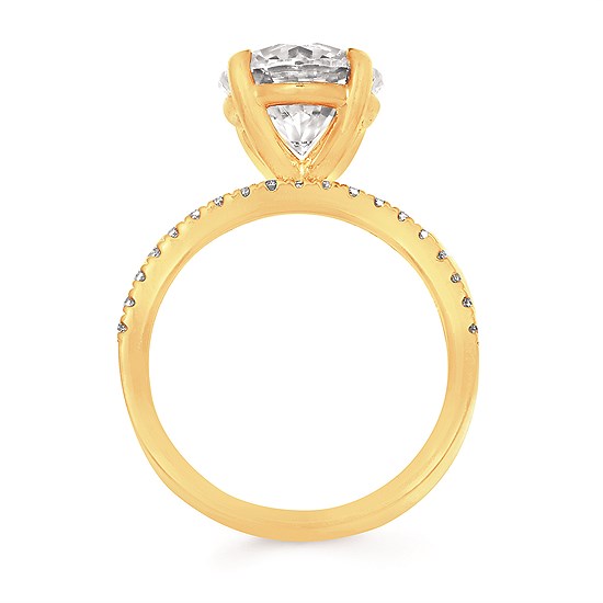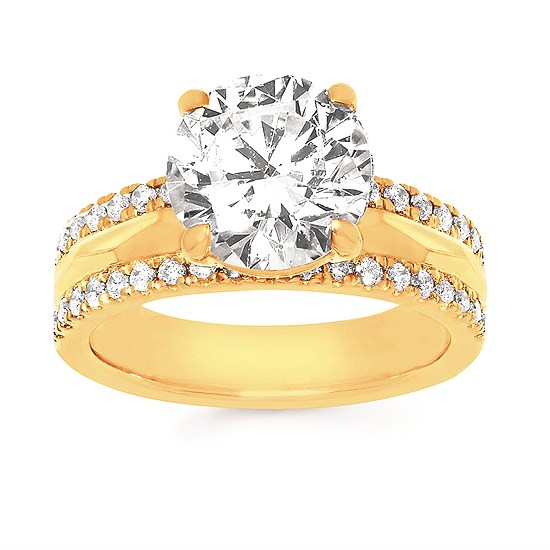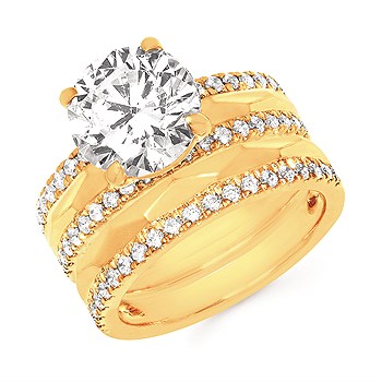 Engagement Ring Modern Bridal: 3/8Ctw. Diamond Semi Mount shown with 3 Ct. Round Center Diamond in 14K Gold